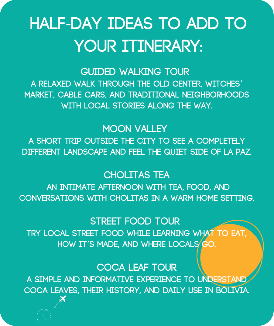 Even the best planned day doesn’t fit everyone, and that’s the beauty of La Paz. If parts of this day don’t feel like your style, you can easily swap them for a short half-day experience instead. La Paz is perfect for mixing and matching, and sometimes a small change makes the day feel even more yours.